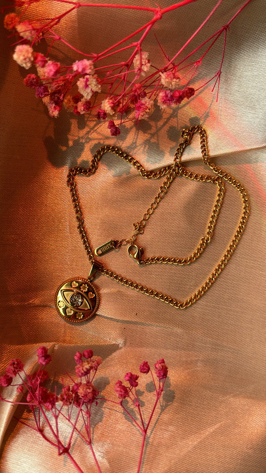 Golden Glimmer Eye Pendant Necklace